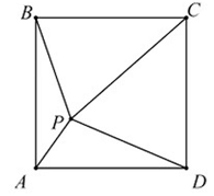 9、(4分) 如图,在正方形\(ABCD\)中,\(PA=1\),\(PB=2\),\(PC=3\),则\(∠APB\)的度数为____.