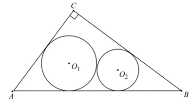 15、(6分) 如图,在直角\(△ABC\)中,\(∠ACB=90^∘\),\(AC=3\),\(BC=4\).圆\(O_1\)与边\(AC\)和\(AB\)相切,