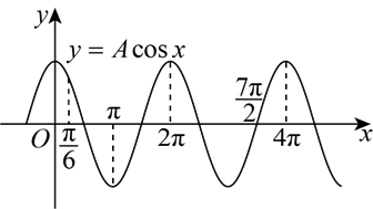 即\(y=A\cos t\)在区间\(\left[\dfrac{π}{6},2πω+\dfrac{π}{6} \right]\)上有且仅有\(4\)个零点和\(1\)个最大值点.