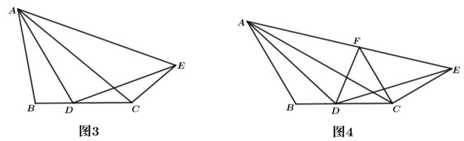 (3)如图4,当\(α=120^\circ\)时,过点\(C\)作\(CE||AB\)交\(AE\)于点\(F\),若\(AB=6\),\(CF=DF\),求\(CD\)的长.