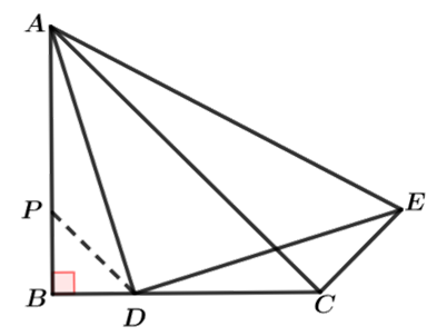\(\left\{ \begin{array}{c} ∠ABD=∠ADE=90^\circ\\ ∠ABD+∠BAD=∠ADE+∠EDC \end{array} \right. ⇒∠PAD=∠EDC\),