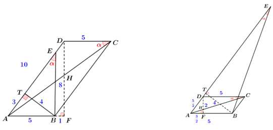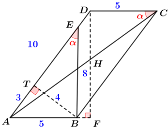① 当\(AD=10\)时,过点\(B\)作\(BT⊥AD\),点\(D\)作\(DF⊥AB\),\(AC\)与\(DF\)交于点\(H\),