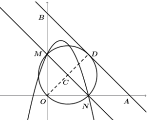 易得\(∆AOB,∆MON\)均为等腰直角三角形,则\(O,C,D\)三点共线,且\(CD⊥AB\),
