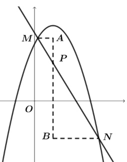 已知抛物线\(y=-x^2+2x+3\)和直线\(y=k(x-1)+2\)(其中\(k<0\)),直线经过定点\(P\),与抛物线交于\(M,N\)两点(点\(N\)在点\(M\)的右侧).
