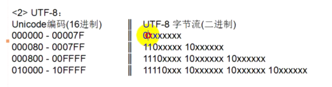 utf-8:可变长存储方案,