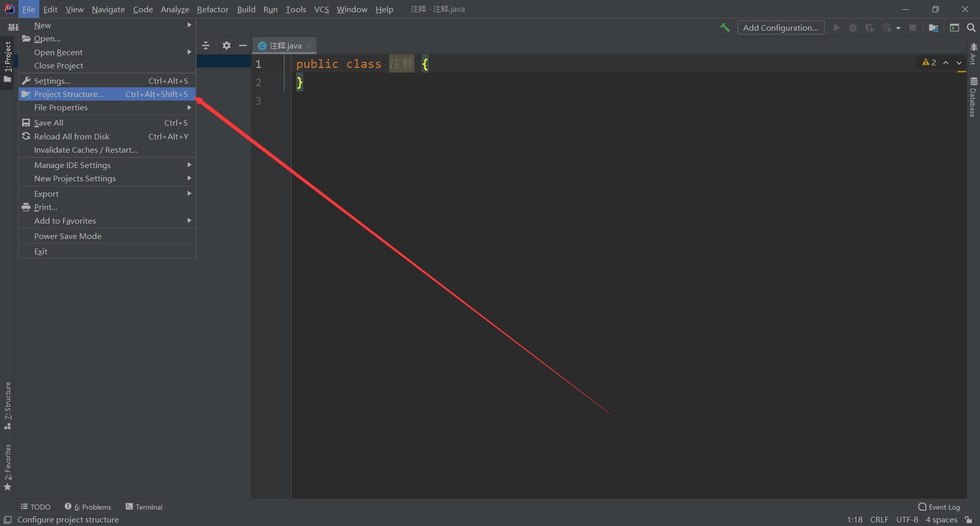 1 public class 注释 { 2 public static void main(String[] args) { 3 //单行注释 4 //输出一个hello world! 5 System.out.println("hello,world!"); 6 } 7 }