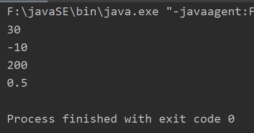 1 package operator; 2 3 public class demo1 { 4 public static void main(String[] args) { 5 //二元运算符 6 // ctrl+d 复制当前行到下一行 7 int a =10; 8 int b =20; 9 int c =25; 10 int d =25; 11 12 System.out.println(a+b);//30 13 System.out.println(a-b);//-10 14 System.out.println(a*b);//200 15 System.out.println(a/(double)b);//0.5 16 17 } 18 }