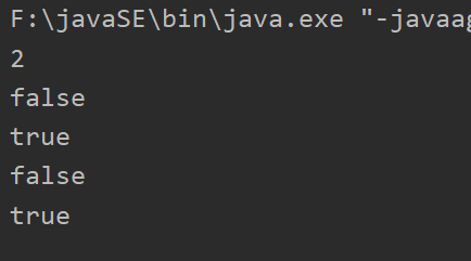 1 package operator; 2 3 public class demo3 { 4 public static void main(String[] args) { 5 //关系运算符返回的结果: 正确,错误 布尔值 6 //if 7 //%模运算,取余数 8 9 int a = 10; 10 int b = 20; 11 int c = 22; 12 13 System.out.println(c%a);//2 c/a=2......2 即22/10=2......2 14 System.out.println(a>b);//false 15 System.out.println(a<b);//true 16 System.out.println(a==b);//false 17 System.out.println(a!=b);//true 18 19 20 21 } 22 }