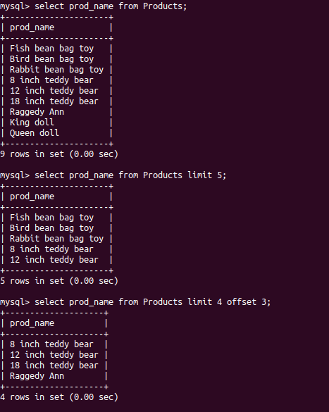 2、limit 后指定返回的行数,offset 指定从哪开始。