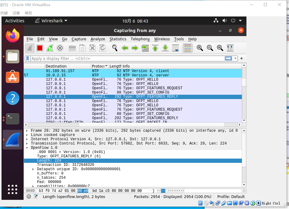 能够运用 wireshark 对 OpenFlow 协议数据交互过程进行抓包;