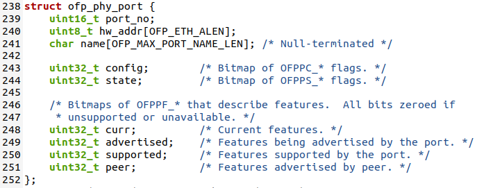 将抓包基础要求第2步的抓包结果对照OpenFlow源码,了解OpenFlow主要消息类型对应的数据结构定义。