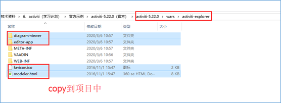 由于activiti官方在5.22.0以上版本不再提供在线设计器,所以,我们的在线设计器仍然使用5.22.0版本。并将activiti5.22.0官方示例中的actiti-explorer.war包中的diagram-viewer、editor-app、favicon.ico 放入springboot静态资源目录static中;