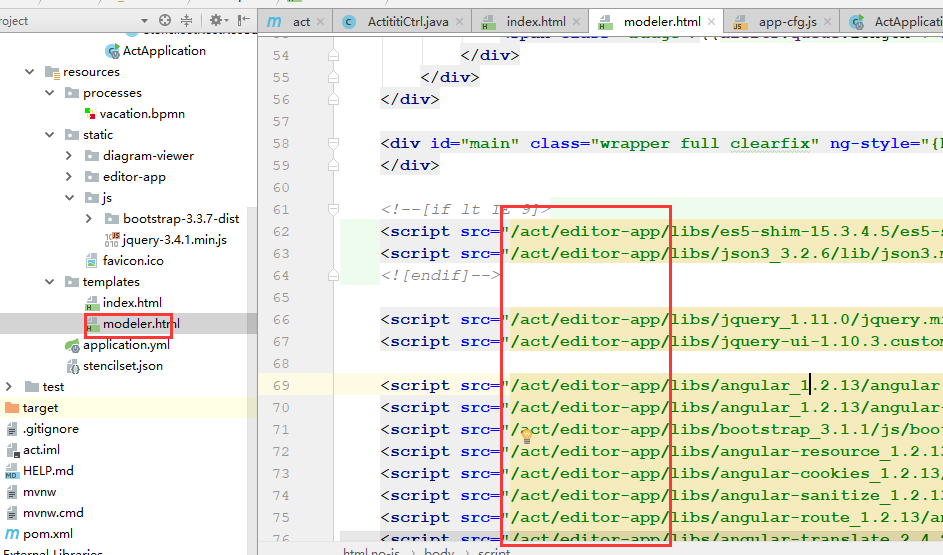 将modeler.html(工作流编辑器页面)放到templates目录下;