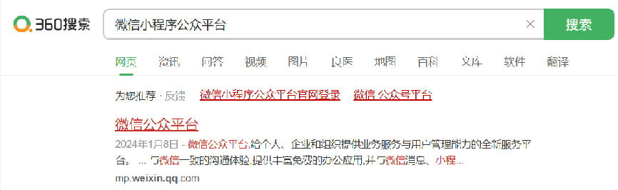 在浏览器中搜索微信小程序官网,点击找到微信公众平台