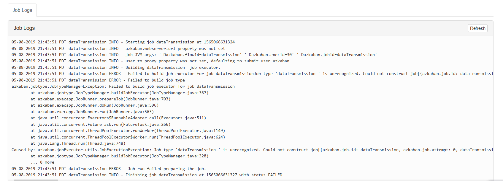 但是azkaban执行job时总是出错,相关异常信息如下: