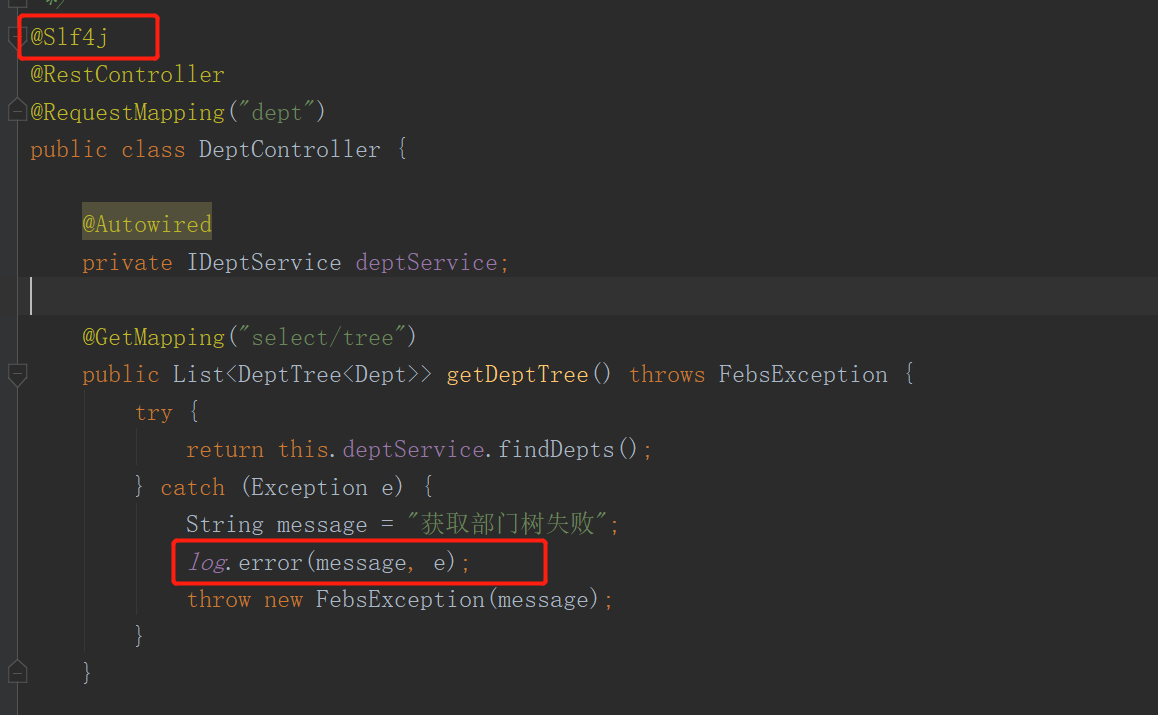 2.在类或者方法上添加@Log 或 @Slf4j 注解,之后直接使用log. 方法就可以,如图所示: