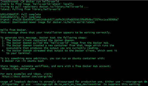 由于本地没有hello-world这个镜像,所以会下载一个hello-world的镜像,并在容器内运行。