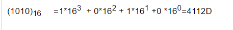 (1010)16 =1*163 + 0*162 + 1*161 +0 *160=4112D
