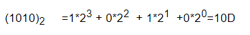 (1010)2 =1*23 + 0*22 + 1*21 +0*20=10D