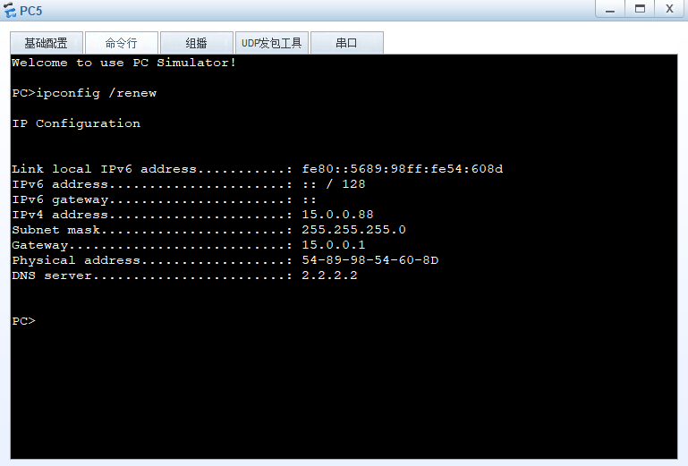 在命令个行使用 ipconfig /renew 获取DHCP的IP分配