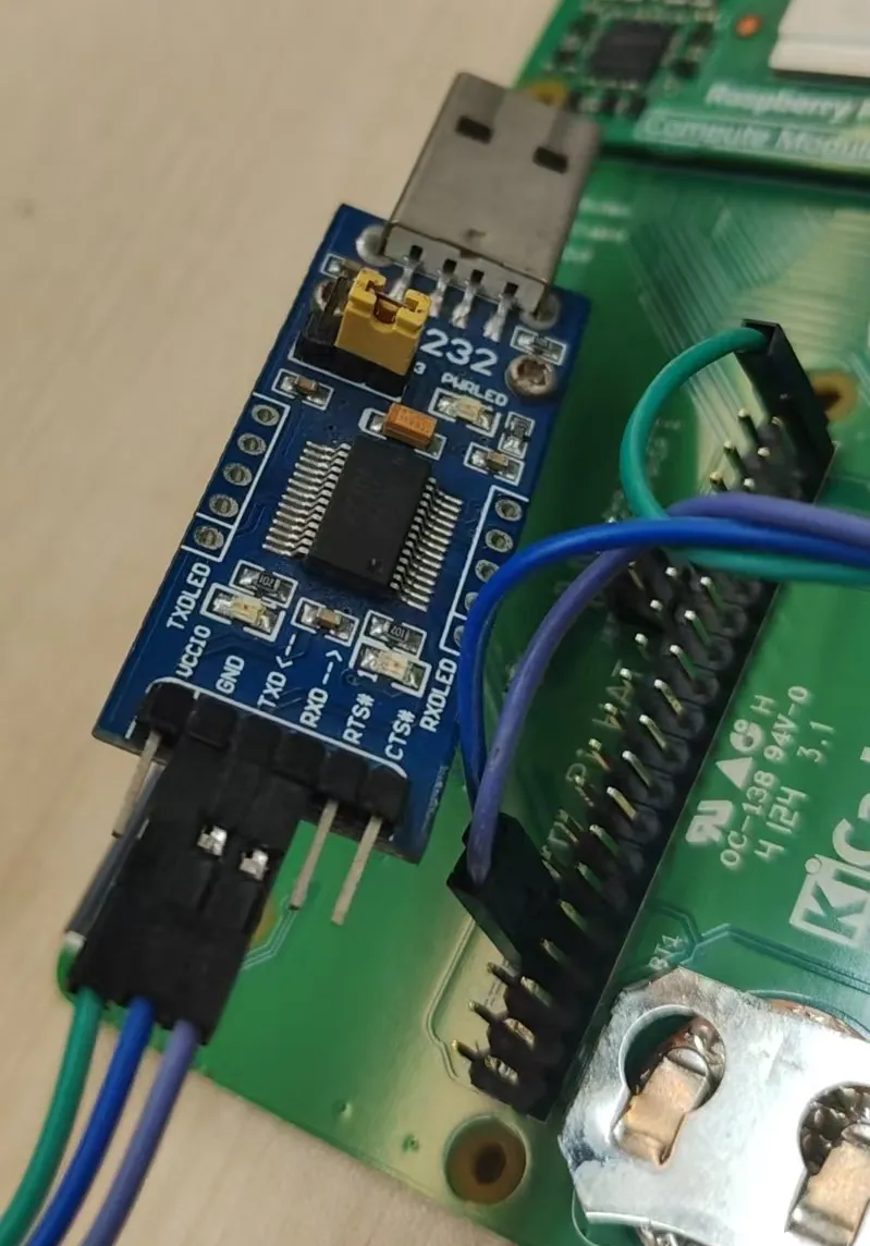 FT232 USB转 TTL 小板来连接树莓派和电脑,波特率9600