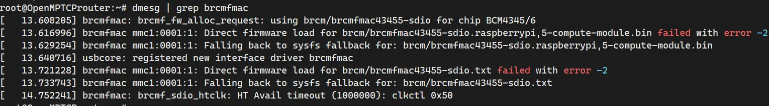 /lib/firmware/brcm/,创建软链接,重启生效/lib/firmware/brcm# ln -s brcmfmac43455-sdio.bin brcmfmac43455-sdio.raspberrypi,5-compute-module.bin /lib/firmware/brcm# ln -s brcmfmac43455-sdio.raspberrypi,4-model-b.txt brcmfmac43455-sdio.txt -