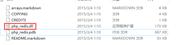 下载好之后解压,复制包里的php_redis.dll文件到php安装目录下的ext里。