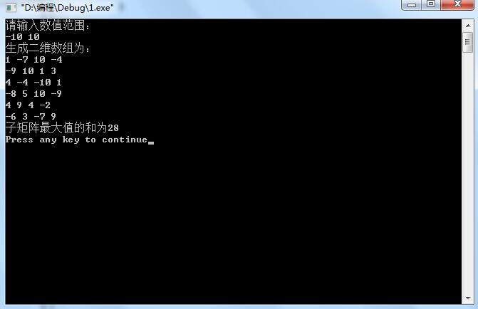 cout<<"子矩阵最大值的和为"<<q<<endl;