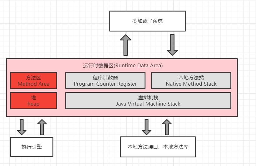 灰色的为单独线程私有的,红色的为多个线程共享的