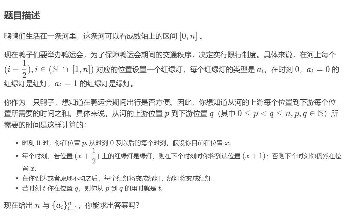 对于前者,由于是所有子区间的和,且走过一个红绿灯的时间均为1个单位,所以,t走 =½n(1+n)