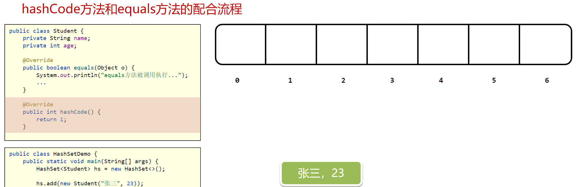 当我们往集合中添加张三时,它会自带调用对象的hashcode方法