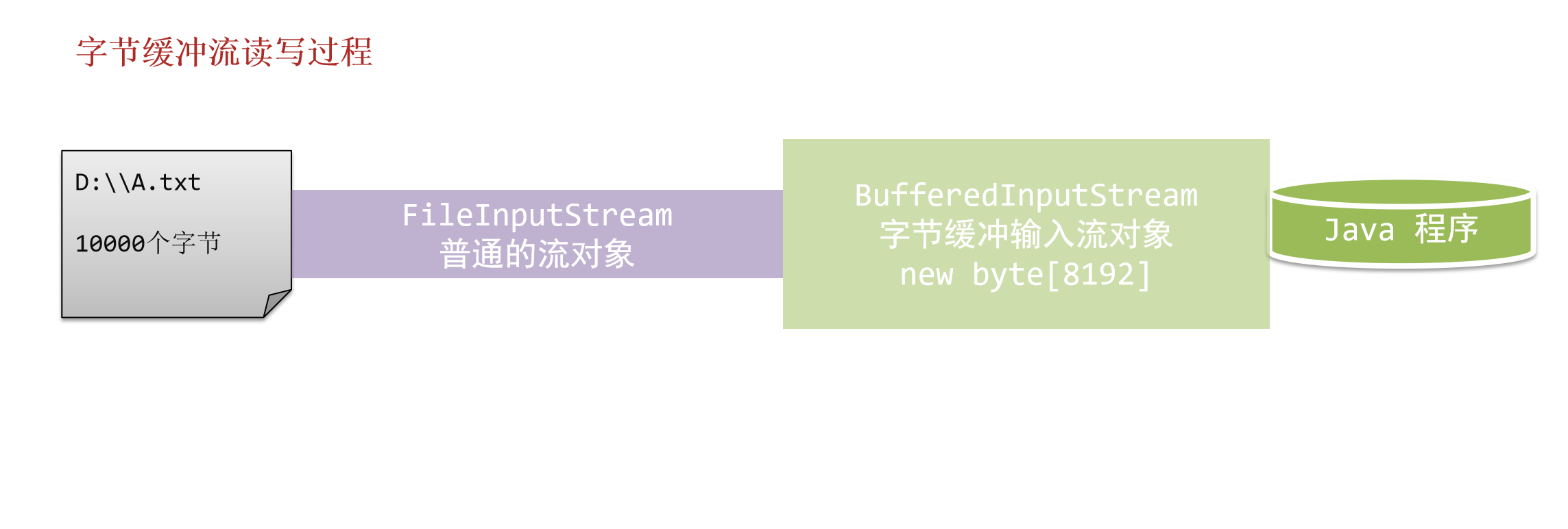 首先,由普通流对象进行文件关联,再由字节缓冲流进行包装