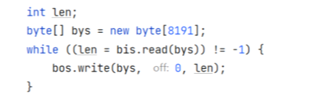我们自定义的数组起到的作用:作为中介,存入左侧内置数组取出的8192个字节,再把8192个字节传给右侧内置数组,大幅加快读写速度。