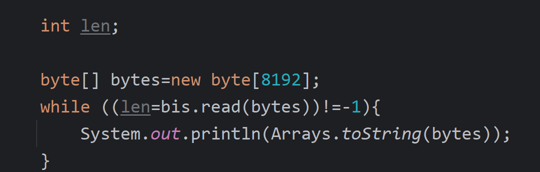 如果是多个读取,想在控制台看到读取的字节,输出我们自定义的中介数组