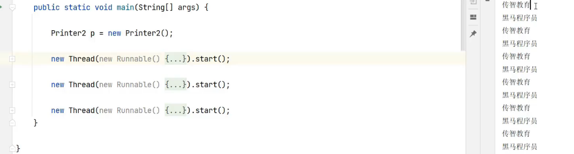使用Runnable开启三条线程,右键运行,控制台并没有按照传智教育-黑马程序员-传智大学的顺序打印,有漏掉的地方
