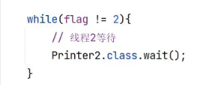 3.执行结束,如果线程1又抢到了执行权,此时flag为2,满足if条件,锁对象调用wait方法,线程1就会进入等待