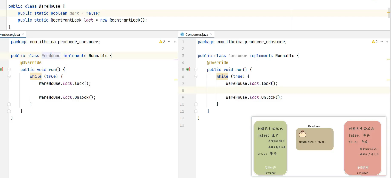 当没有包子时,消费者要等待,生产者做包子,然后唤醒消费者吃包子