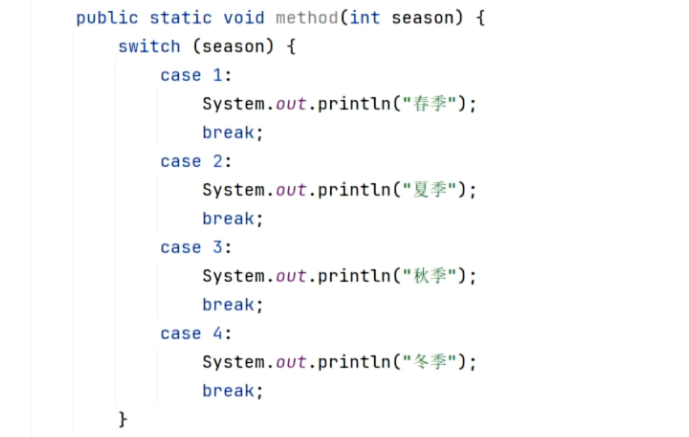 但是按照这样的写法,调用者就很容易忘记数字对应的季节,使用起来很不方便