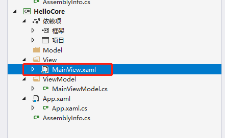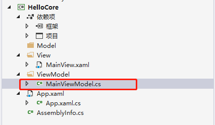 在MainView.xaml.cs中添加DataContext进行MainView和MainViewModel的绑定