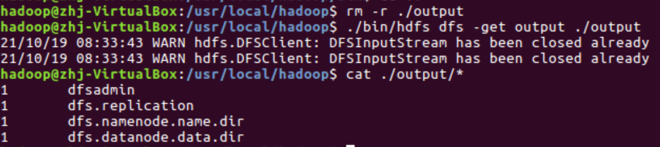 e.运行MapReduce示例作业,输出结果放在output目录下。