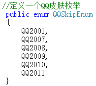 如: string strValue="qq2001"; 转换的时候: QQSkipEnum qprase= (QQSkipEnum)Enum.Parse(typeof(QQSkipEnum) , strValue); 这样是不行的,因为在枚举中没有 "qq2001"的定义,只有大写的“QQ2001” | |