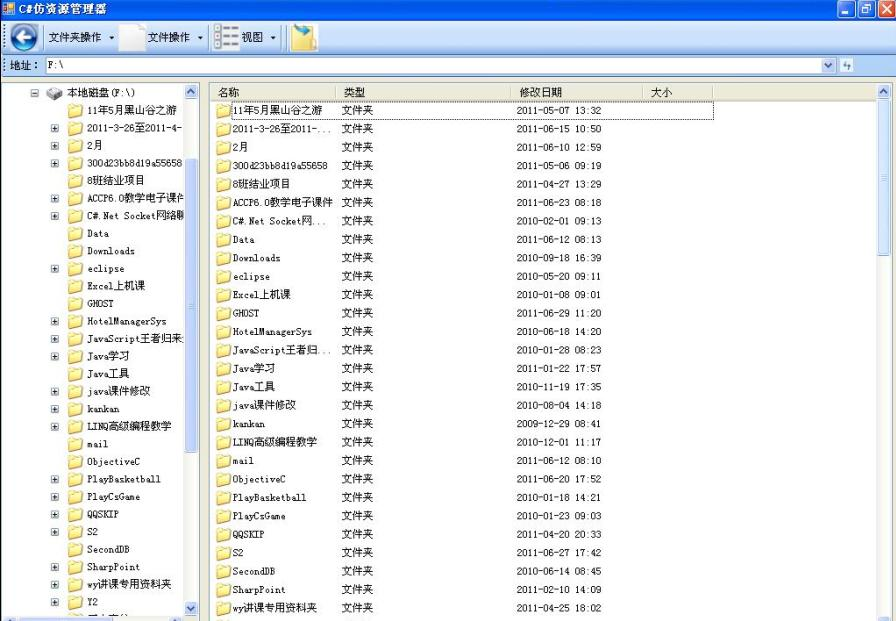 本案例是使用C#编写的,编windows资源管理器。以下是效果图: