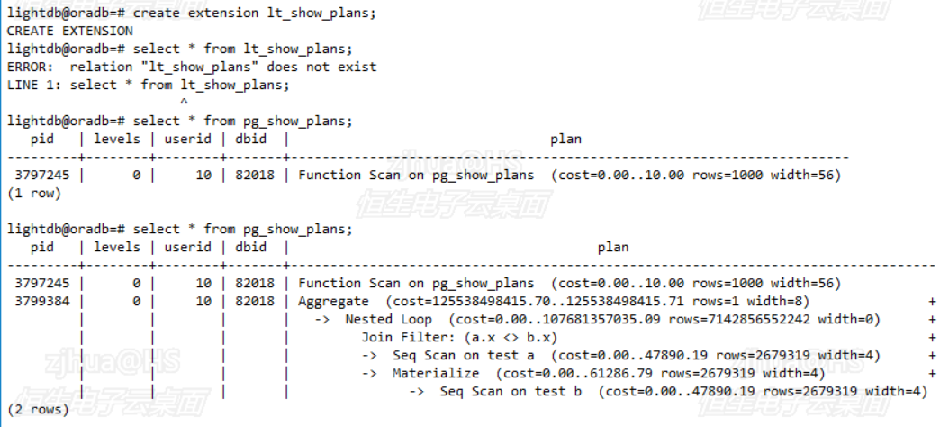 lightdb修复了一个致命缺陷,默认版本开启后高并发下性能下降90%。 shared_preload_libraries='lt_show_plans'配置后,通过select * from pg_show_plans即可查看,如下: