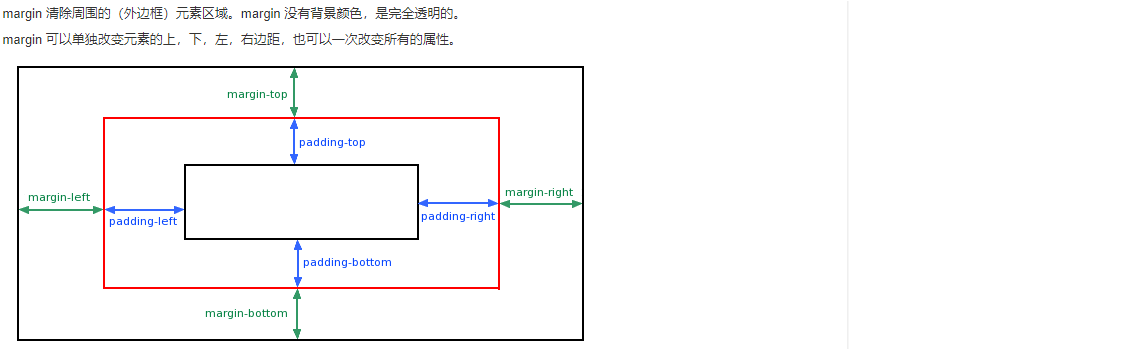 综合了以上四种方向的外边距属性 margin,使用类似于内填充 padding