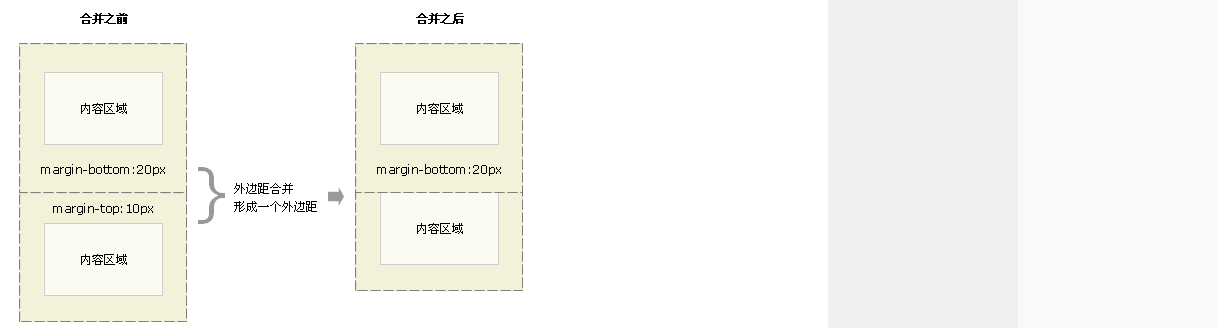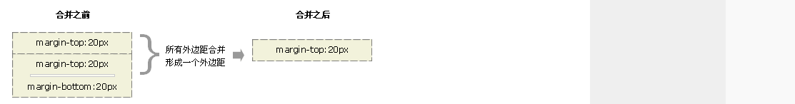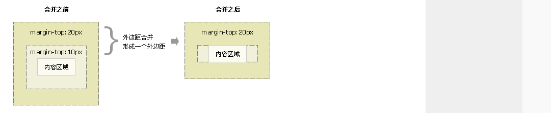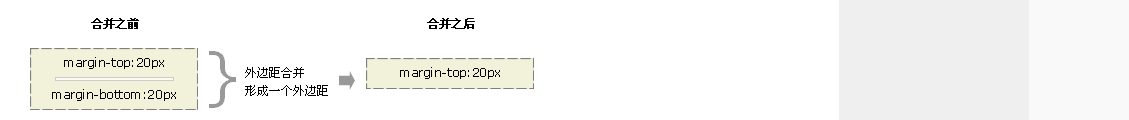 当一个元素出现在另一个元素上面时,第一个元素的下外边距与第二个元素的上外边距会发生合并。请看下图: