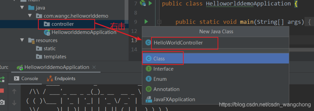 新建一个 controller 文件夹,并在这个文件夹下新建一个名字叫做 HelloWorldController 的类