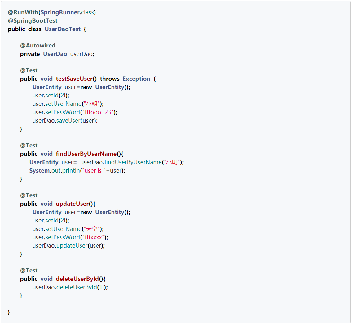Repository 层实现了 User 对象的增删改查