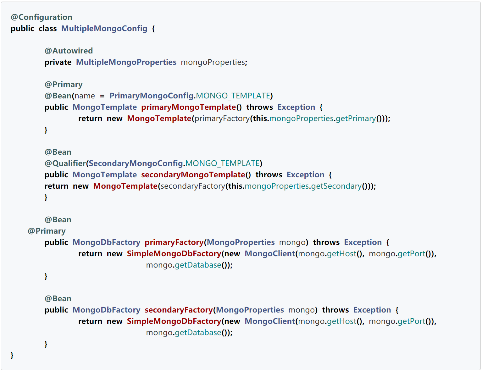 读取对应的配置信息并且构造对应的 MongoTemplate