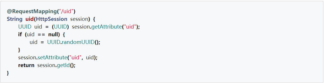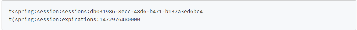 其中 1472976480000 为失效时间,意思是这个时间后 Session 失效,db031986-8ecc-48d6-b471-b137a3ed6bc4 为 sessionId,登录 http://localhost:8080/uid 发现会一致,就说明 Session 已经在 Redis 里面进行有效的管理了。