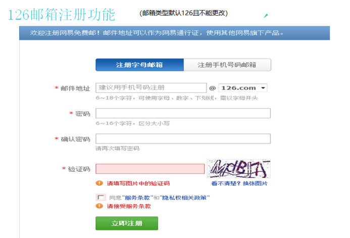 测试用例 QQ账号6----10位自然数、某城市电话号码、126邮箱注册功能